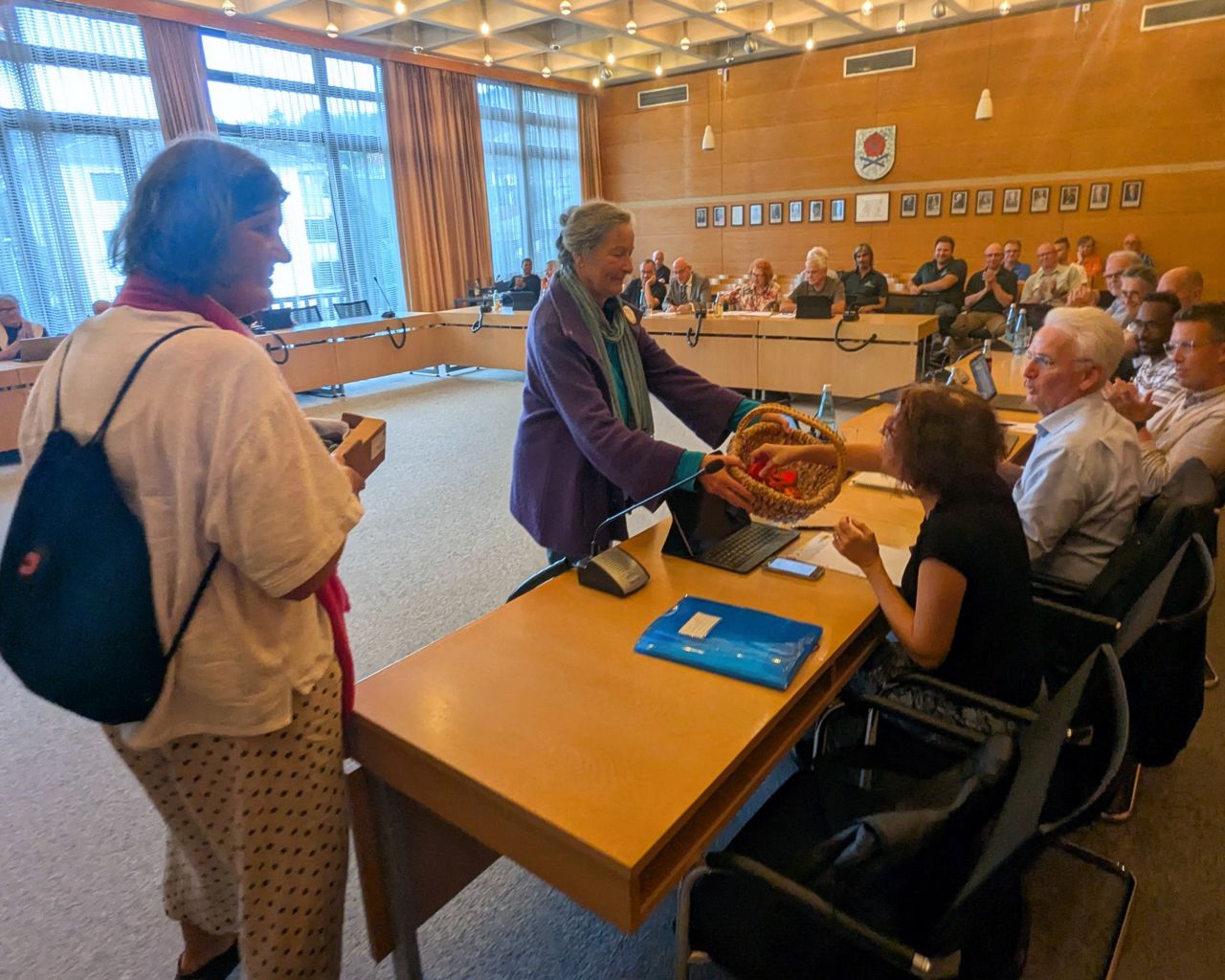 Bildungswerkstatt - Flashmob Gemeinderat Gernsbach mit Gratulation Bürgermeister Julian Christ zur Wiederwahl und Wertschätzung für Gemeinderäte und Verwaltung