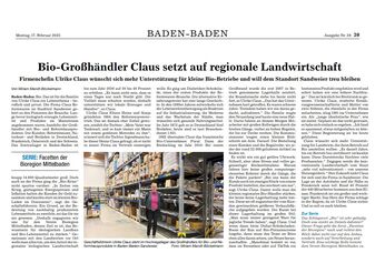 Baden-Baden. Bio. Das ist für die Familie von Ulrike Claus ein Lebensthema – beruflich und privat. Die Firma Claus Reformwaren im Stadtteil Sandweier gehört zu den Pionieren der Branche: Lange bevor biologisch erzeugte Lebensmittel und Produkte im Mainstream angekommen waren, handelte der Großhändler mit Bio- und Reformhausprodukten.
