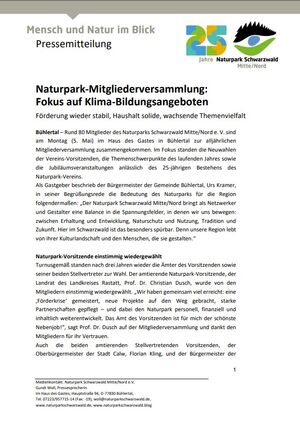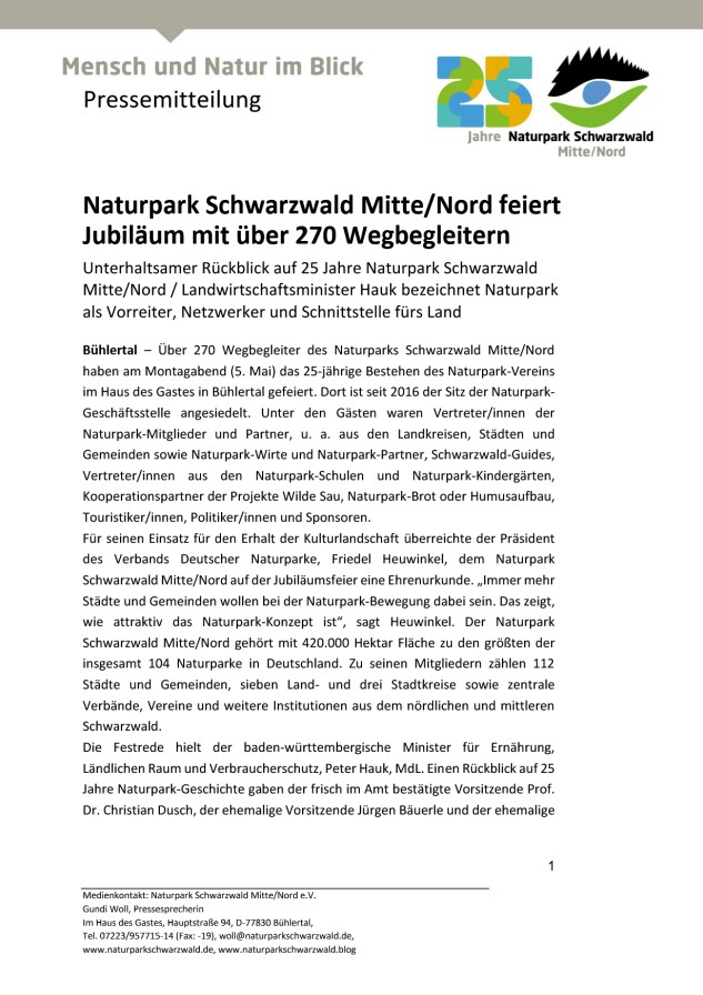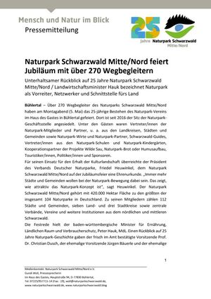 Bioregion Mittelbaden+ 2021 e.V. gratuliert dem Naturpark Schwarzwald Mitte/Nord zum 25-jährigen Jubiläum