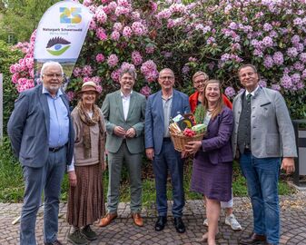 v.l. Claus Haberecht, Raphaela Riedmiller-Kuttnick-Wicht, Prof. Dr. Christian Dusch Landrat Landkreis Rastatt und Vorsitzender des Naturpark Schwarzwald Mitte/Nord, Karl-Heinz Dunker Geschäftsführer Naturpark Schwarzwald Mitte/Nord, Ulrike Claus, Helga Decker und Peter Hauk, Minister für Ernährung, Ländlichen Raum und Verbraucherschutz Baden-Württemberg