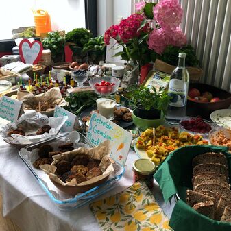 Erfreuliche 38 Teilnehmer:innen kamen am 20. Juni 2024 ins Stadtteil- und Familienzentrum Oststadt, um sich von Dr. Annett Andersch anschaulich über eine gesunde Ernährung für uns und unsere Erde zu informieren. Die Referentin hatte zusammen mit der Bildungswerkstatt zur Unterstützung der Bio-Musterregion Mittelbaden+ einen interaktiven Vortrag mit Imbiss organisiert, der im Rahmen des Quartierprojektes Caring Community** der Stadt Offenburg stattfand. Für das leckere Büfett sorgten SoLaVie, die Initiativgruppe "Gemeinsam Leben im Seidenfaden" und der Verein Mehrgenerationen-Wohnprojekt Offenburg (MWO e.V.).