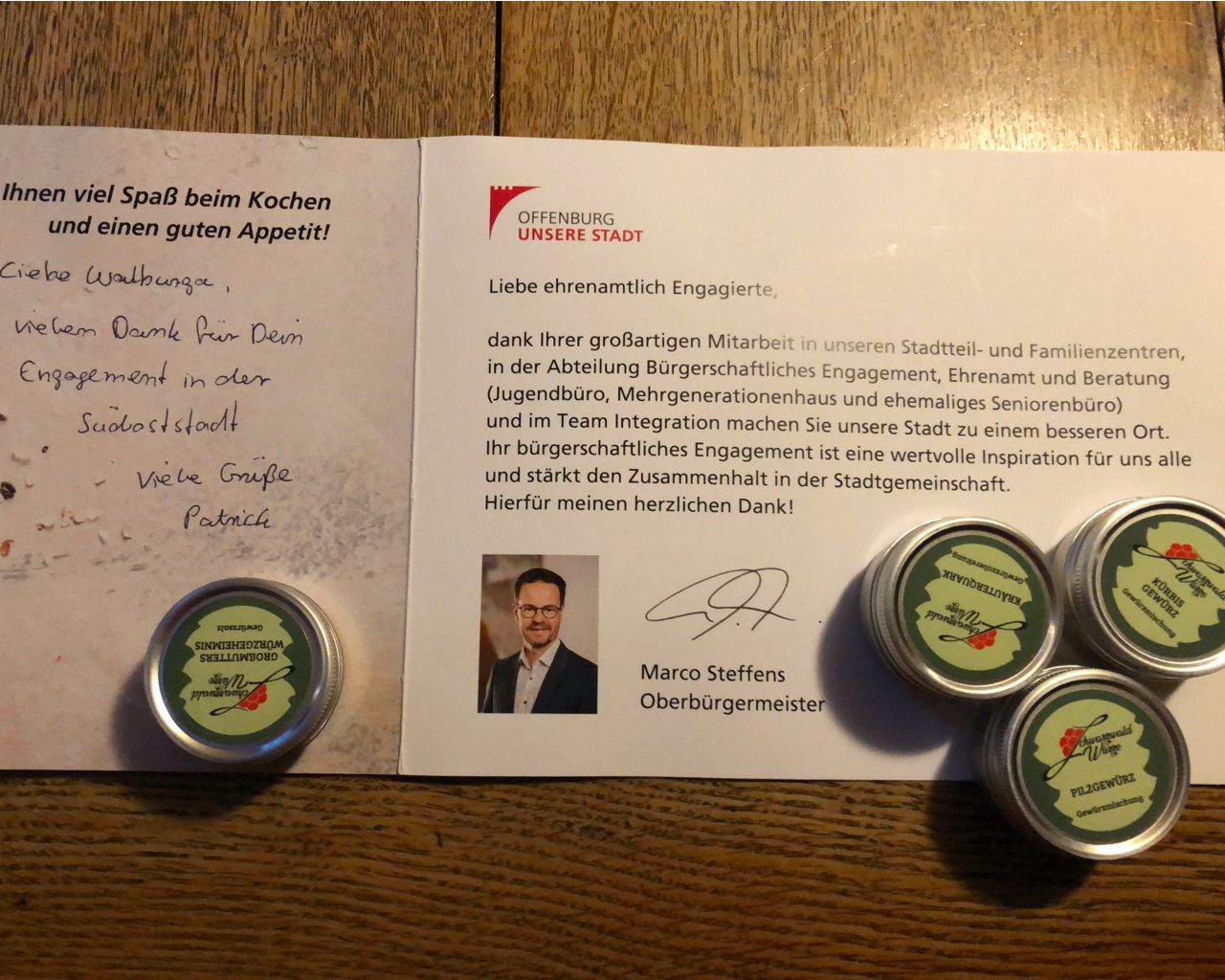 Impuls: Wunderschöne Wertschätzung der Stadt Offenburg für 2 Aktive der Bildungswerkstatt!