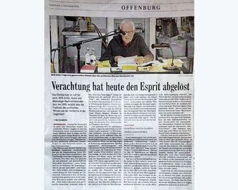 - 2024-10-01 OT Badische Zeitung, Autor Gerold Erb "Verachtung hat heute den Esprit abgelöst" mit Willi Keller "Politische Witze", Oleofactum