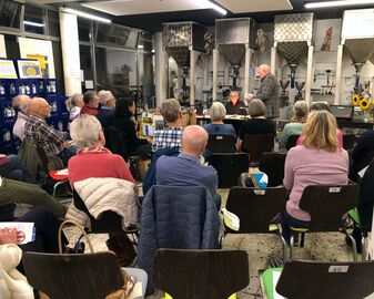 Die Glückstour-Teilnehmer:innen genossen anschließend nach kurzem Imbiss noch das spannende, durch den ehemaligen SWR-Redakteur Willi Keller präsentierte, Kulturangebot - Politische Witze - in der Ölmühle Oleofactum Offenburg.