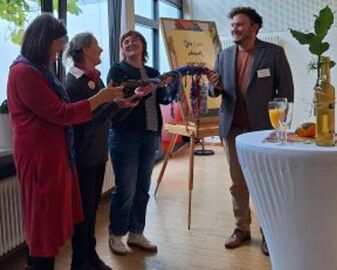In Vertretung für Oberbürgermeister Marco Steffens freute sich Simone Müller, Dezernentin für Sozialplanung und Steuerung in der Stadtverwaltung Offenburg und zuständig für die Betreuung der Familienzentren in Offenburg diese wertschätzende Auszeichnung hier im Stadtteil- und Familienzentrum Oststadt mit überreichen zu dürfen! Bei Glückstour und FiBL-Staffelübergabe beteiligten sich auch wieder Vertreter:innen des engagierten Projektkooperationspartners "Mehrgenerationen Wohnprojekt Offenburg" (Hintergrund MWO e.V.)