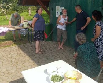 Foto: Fachsimpeln vor Obstscheune